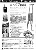 | 概要 | 「アチック・ミューゼアム (Attic Museum)」とは… 「屋根裏部屋の博物館」のことです。 第二次大戦末期の日銀総裁、戦後幣原内閣の大蔵大臣として日本経済の再建に尽くした渋沢敬三(1896~1963)が、青年時代に自宅車庫部屋を利用してつくった博物館です。友人たちも大切にしていた「コレクション」を持ち寄り、旅行先でみやげ物の玩具などを集めてきました。 はじめは無邪気な「博物館ごっこ」でしたが、やがて庶民が生活のためにつくり使い続けてきた道具を研究しなければとの思いを抱き、それらを「民具」と名づけて全国の学者や知人に収集を呼びかけました。そして2万点以上に及ぶ、20世紀前半の庶民生活を探る貴重なコレクションが生まれたのです。 今回の企画展では「みんぱく」が所蔵しているこのコレクションを紹介します。 |