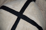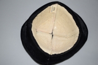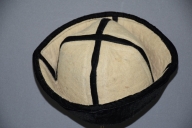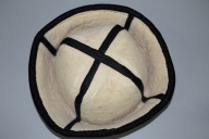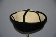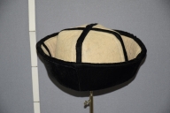 | キャプション | ベージュのフェルト地 頭頂部・鍔・縁等に黒ベロア地をアプリケ |