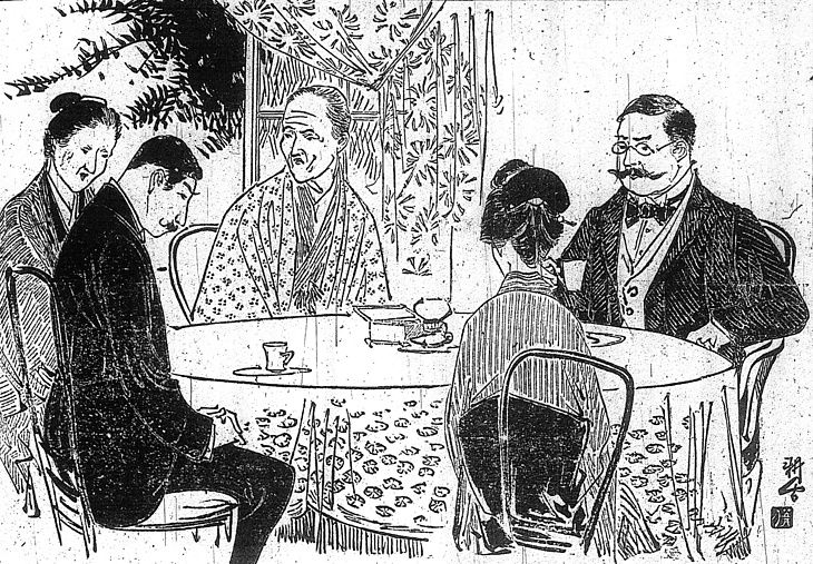 | キーワード | 八字髭;蝶ネクタイ;眉落とし;お太鼓結び;テーブル;テーブルクロス;コーヒーカップ;ソーサー;椅子;カーテン |