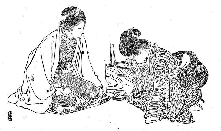 | キーワード | 竪縞のきもの;芸者島田;手の突き方;袖口で涙をぬぐう;座布団 |