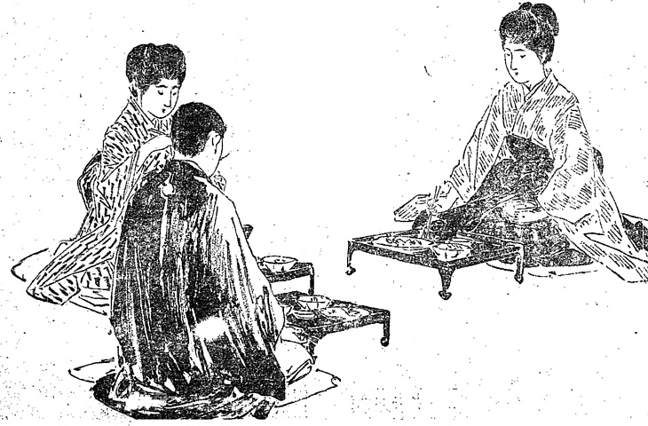 キーワード 黒紋付き羽織;箱膳;座布団