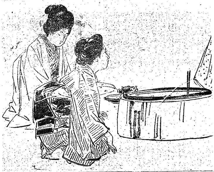 キーワード 竪縞のきもの;お太鼓結び;火鉢