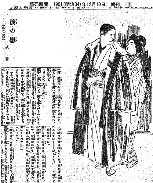 キーワード [インバネス;トンビ;鳶(とんび);二重回し;二重廻し;二重外套;二重マント];毛皮の襟;外套を着せかける