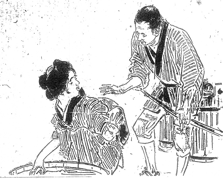 キーワード 竪縞のきもの;黒襟;盥(たらい);つぎ当て
