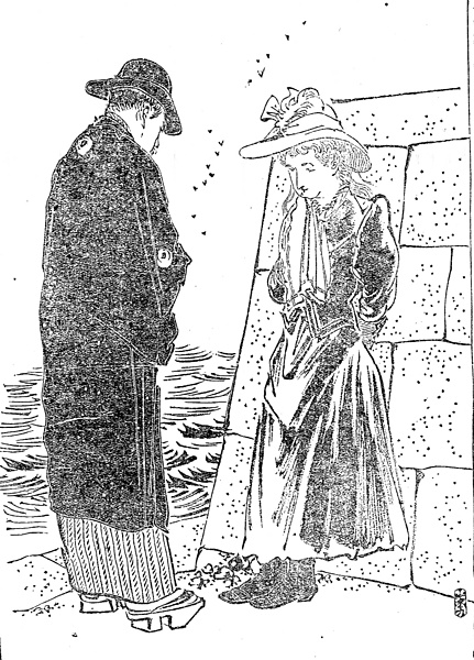| 身装画像コード | D7sh:[小説のヒロイン;挿絵美人(この年の評判小説中の美人)] D7se:[西洋人モデル;混血児タイプ] Wbo:[かぶり物一般;帽子] D2:[ヘアスタイル] D6se:[洋装;西洋化;西洋観;ハイカラ;西洋かぶれ;開化ぶり;西洋憧憬] Wkut:[靴;サンダル;靴修理;靴磨き] Whan:[ハンカチーフ] D801:[強い悩み・悲しみ・口惜しさ・羞恥の表現] Vhao:[羽織] Wge:[下駄;クロッグ] K600:[大中の港湾施設;メリケン波止場] |