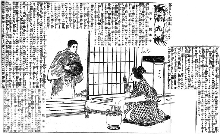 | 説明 | 翌日3月30日号の新聞に、3月29日号の服装についての描写と、挿絵についての詫び文あり。「挿絵の一日先きに走りしハ作者の過ちなり、読む人これを宥(ユル)せ」。(大丸 弘) |
