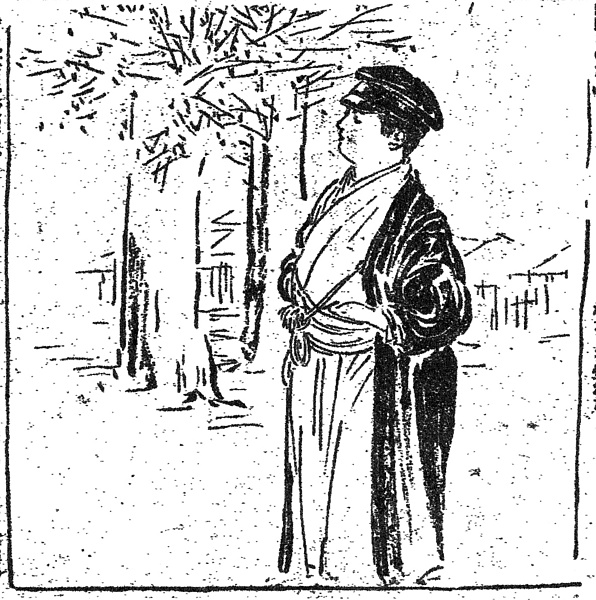 キーワード 学生帽;帯に手を差し入れる;物思い