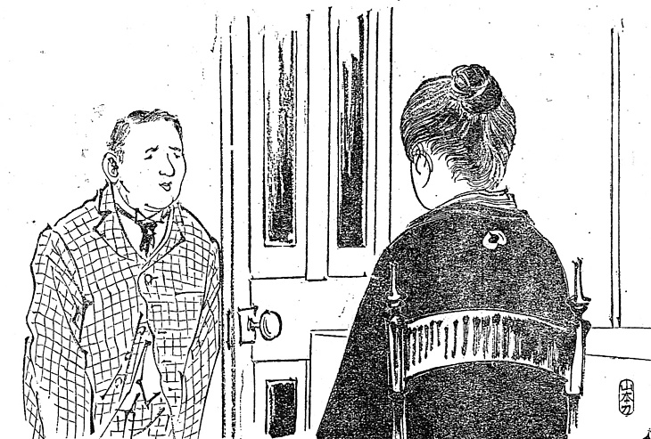 キーワード 洋妾上がり;ラシャメン上がり;娼婦上がり;つくね髪;黒紋付き羽織;格子の背広;格子のズボン;ドア;ドアノブ