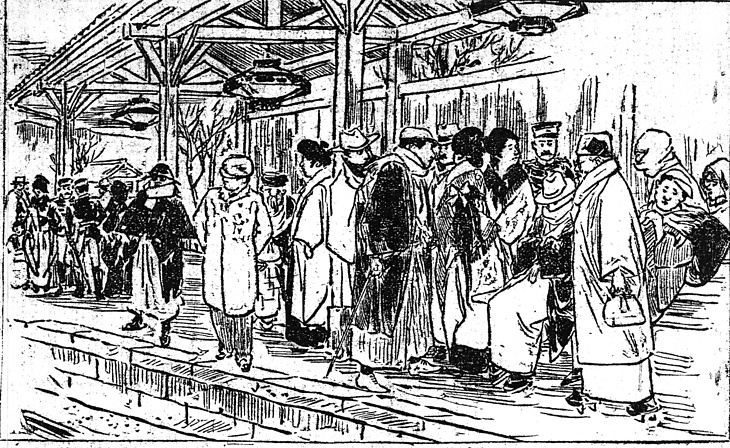 | キーワード | 東京駅のプラットホーム;停車場;和装と洋装;制服 |
