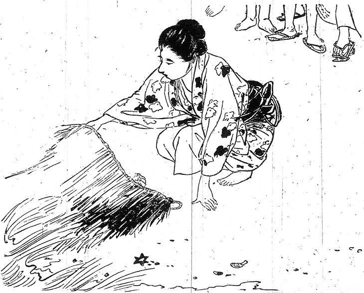 | 身装画像コード | K60:[海岸] D004:[適齢期の娘;新造;(1) 嫁入り前の娘,新妻,さらに一般の他家の妻女をいう。] D2ic:[銀杏返し] Vob:[帯] D3su:[裾;褄;端折り;からげ] |