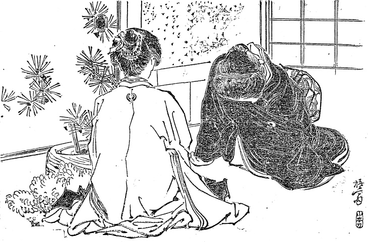| キーワード | 和室;火鉢;障子;襖(ふすま);紋付き羽織;長羽織;しぐさ;袖口で涙をぬぐう |