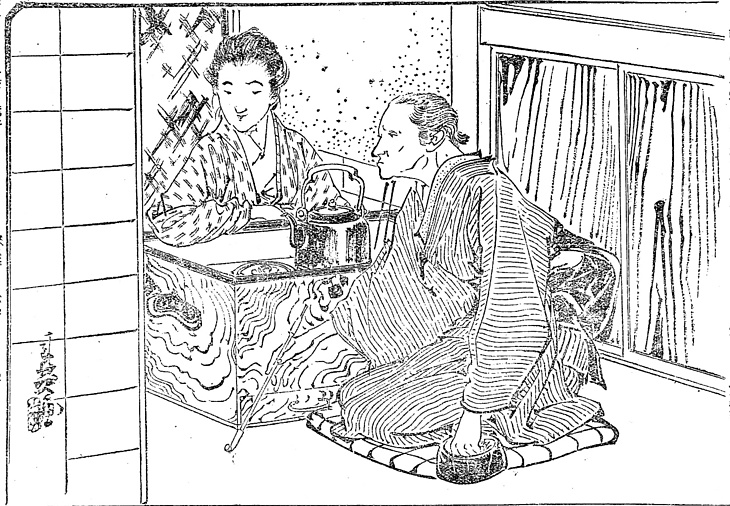 | キーワード | 長火鉢;薬缶(やかん);座布団;切り髪;切下げ髪;お太鼓結び;長煙管(きせる) |