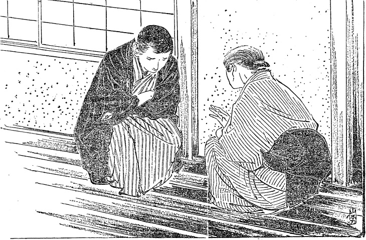 | 説明 | 第26回は、気に入らない嫁を追い出す相談を、出戻りの娘、気の毒な嫁にとっては小姑の女としている姑。第32回は、それを息子に告げ、いま隣室に遊びに来ている娘に乗り換えるよう、強要している母親。夫を亡くした女、つまり後家のすべてがそうするわけではないが、この姑のように切髪にする人はけっこういた。髪の毛が少なくなり、丸髷などを結うに結えなくなるのもその理由だったかもしれないし、手間も髪結銭もかけなくて済むのも助かったろう。しかし息子たちがまだ二十そこそこにしては、老けすぎているように、いまの人間には思えるのだが。(大丸 弘) |