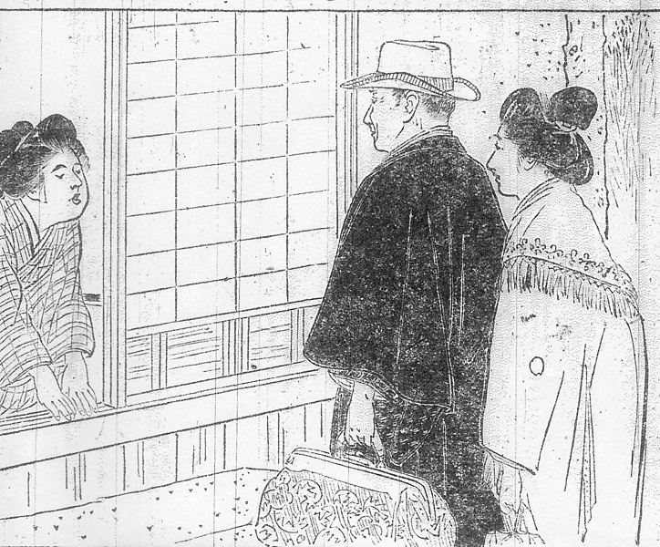 | 身装画像コード | Wbo:[かぶり物一般;帽子] Vwa:[男性和装外套] Wka:[鞄] D2ma:[丸髷] Wkub:[首飾り;ネックレス] Wku:[頸覆い(マフラー,ストール,襟巻,ショール)] Jmi:[見送り;出迎え] G023:[日本式玄関構え] |