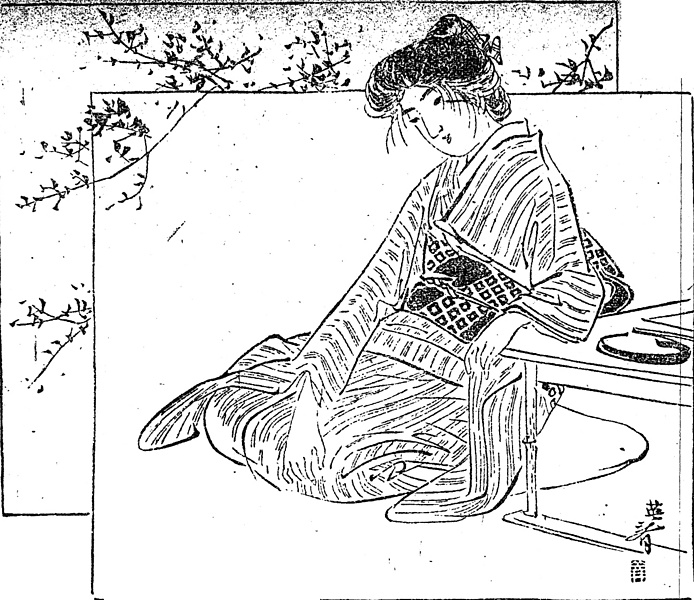 | 身装画像コード | D004:[適齢期の娘;新造;(1) 嫁入り前の娘,新妻,さらに一般の他家の妻女をいう。] D2hi:[束髪(庇髪など、後期平型の)] D1ka:[髪飾り(櫛,簪,リボン)] D80:[姿勢;ポーズ(特異な姿勢・ポーズ・格好一般)] |