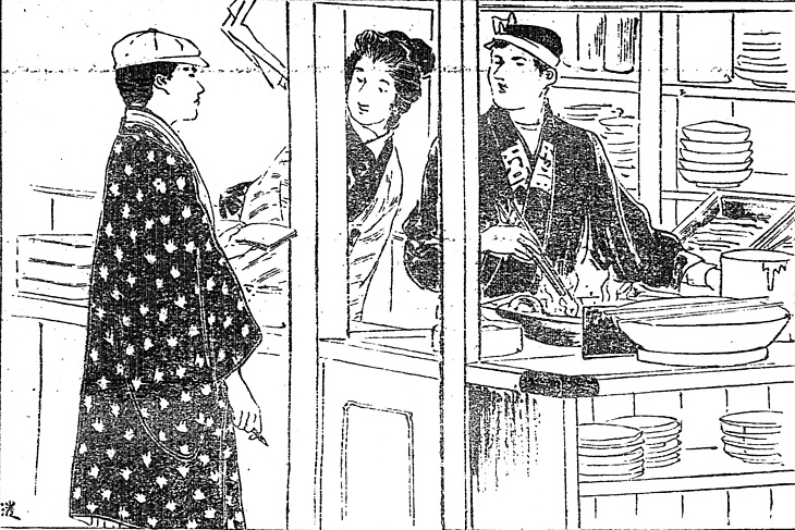 | キーワード | 天ぷら屋;調理場;私服刑事;鳥打帽子;鳥打ち帽子;紺飛白の羽織;角袖;料理番;法被;ねじり鉢巻き;女中;黒襟 |