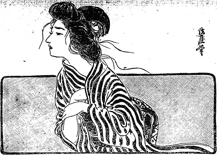 キーワード 竪縞のきもの;胸元に手を差し入れる;横顔;側面