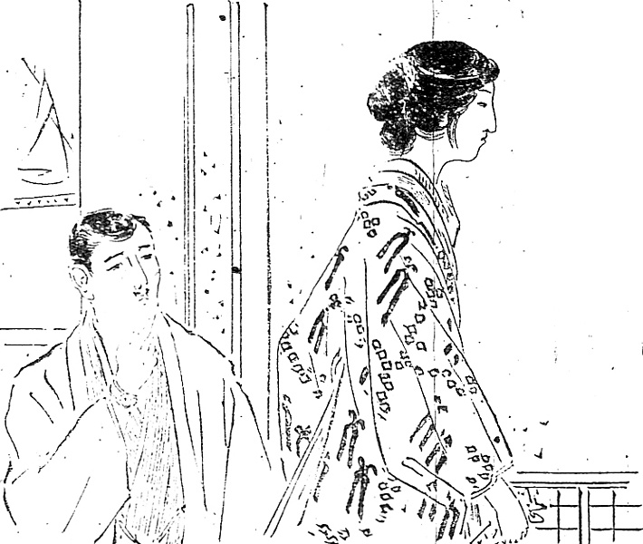 | 説明 | 家族や周囲の反対を押し切って女優の道を歩んでいる女性。第23回のまだ女優学校に入る以前から、第128回の、すでに女優としての一応の成功を納めた段階まで、数年の隔たりがあるが、その第1回にすでに、「ふさふさした髪を女優風に結った女」とあり、また「女の華麗(ハデ)すぎた風俗」ともあるので、四例ともを女優風と見てよいだろう。こういう髪型をまだ束髪と呼ぶとすれば、伝統的な日本髪ではない、という理由だけだろう。中分けしていること、ということは前髪を膨らまさないで後ろに解いていることなどが共通しているが、いわゆる女優髷というスタイルを示すような特色は見られない。第59回の寝床のシーンでは、小さなポーチが枕のそばに置かれている。女性がこうした洋風の鞄を持つようになった最初の時期。(大丸 弘) |