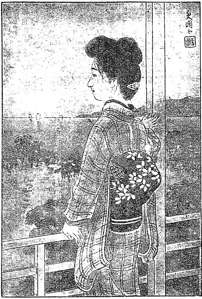 | 身装画像コード | D004:[適齢期の娘;新造;(1) 嫁入り前の娘,新妻,さらに一般の他家の妻女をいう。] D2hi:[束髪(庇髪など、後期平型の)] Vna:[長襦袢;襦袢] Vhan:[半襟] D3ob:[帯の締め方;帯の位置] D800:[感情・思考・意志の表現一般] |