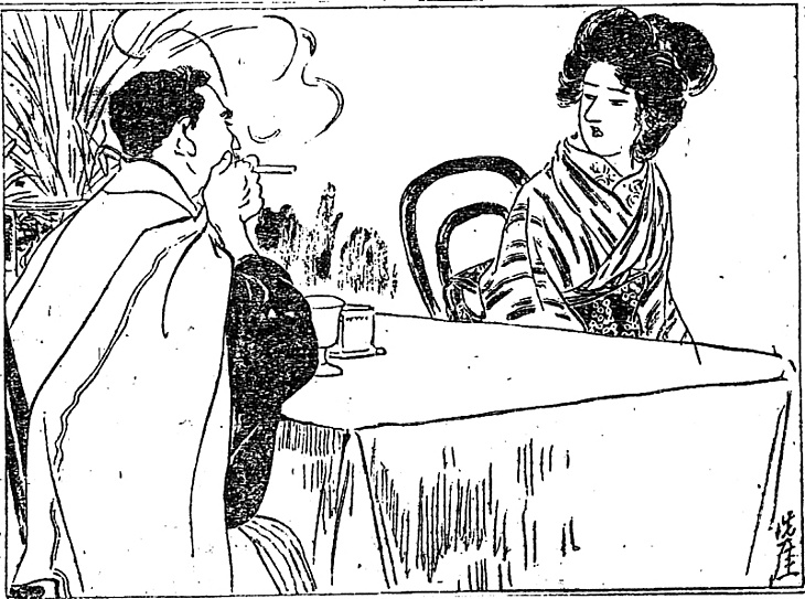 | キーワード | 食堂;女中;[インバネス;トンビ;鳶(とんび);二重回し;二重廻し;二重外套;二重マント];巻き煙草(たばこ);テーブル |