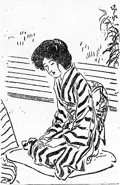 | キーワード | 縁側;座布団;竪縞のきもの;お太鼓結び |