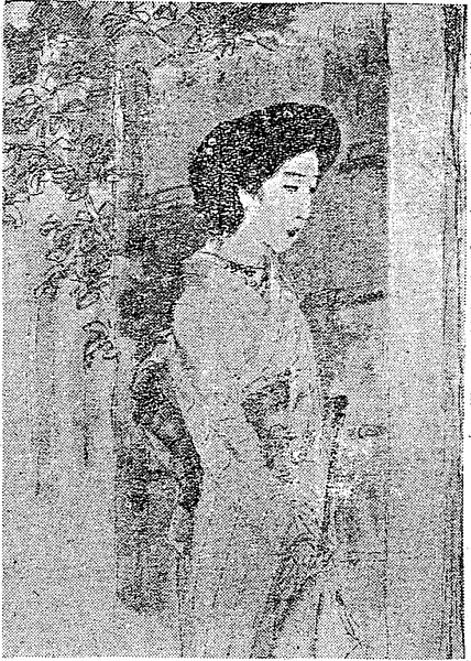 説明 二十歳過ぎの娘。「白っぽい真新しいネルの単衣に、繻珍か何かの贅沢な帯を締めた、小柄な、だがそう痩せていそうには思われない女が、琥珀のパラソルを畳んだまま片手に下げて」、人の門口に立つ。病身の母親に向いた家に転居しようと、知人の男性と一緒に郊外の新開地で空き屋を尋ね歩いている。この時代、女性の帯は、冬は繻珍、夏は絽繻珍にたいていは決まっていた。ネルのきものは明治の初めからこのころまで、主に夏のふだん着として好まれたもの。髪は頭にクッションを載せたような大きな束髪で、髷はすっかり退化してしまった。髷なしのこのあたらしいタイプの束髪を新橋と呼んだ。髱(タボ=後ろ髪)に当たる辺にかならず簪(カンザシ)などの髪飾りをつける。(大丸 弘)