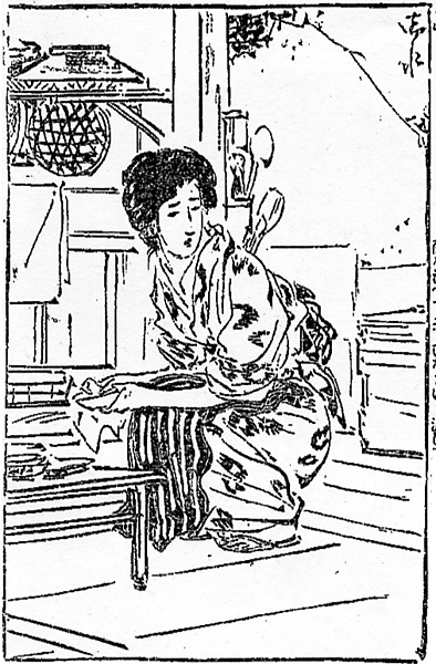 | 身装画像コード | H1:[飲食関連設備・調度] D2hi:[束髪(庇髪など、後期平型の)] Wmae:[前掛;エプロン;割烹着] Vtas:[襷] D80:[姿勢;ポーズ(特異な姿勢・ポーズ・格好一般)] |