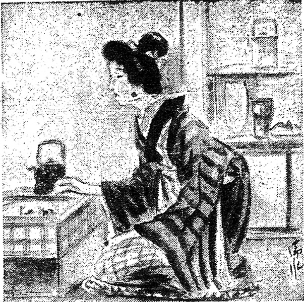 | 説明 | 舞台は新橋の花街、描かれているのはみんな芸者たちだが、平仮名のくの字なりの、前屈みのスタイルの共通性が印象的。しかし芸者はこの時代、素人の女に較べれば姿勢のよいもの、とされていた。それは第162回で三人の帯を取り去ってみればわかるだろう。日本女性の縮こまっているとされるスタイルは、大きな帯の上に羽織を着ているときの印象が大きい。もともと女は、老人や子ども以外、帯の上にものを羽織る習慣がなかったのが、「日傘代わりの」夏羽織や、この第157回、第158回の女性のような、安直着の半纏が、羽織の認識を変えていった。第157回の二人の女のうち右は島田、左は病みあがりのため、はっきりわからないが櫛巻風にしているらしい。第158回の女は、いまはもう商売をしていないため丸髷に結っている。第162回のプラットホームでの見送りは、二人の芸者はお座敷と同じ「出の衣裳」で芸者島田。後ろの小女はたぶん桃割れ。(大丸 弘) |