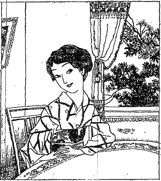 | 説明 | 今日退院する女友だちを見舞いに来た主人公は、出るばかりになった彼女を上野公園の散歩と食事に誘う。本文の中ではその女友だちを、雪のように白い顔、水晶のような瞳、派手な単衣の模様、そして「ふっくらとした廂髪(庇髪)(ヒサシガミ)が見えた」と説明している。散歩に誘われた彼女は、「頭を傾げて愛嬌のある眼で悌造を見ながら、嫣然(ニッコリ)と笑った」とあり、第4回は女の“coquetry(コケットリー)”がマンガチックに表現されている。挿絵の小川治平は三十代で早世した漫画家で、したがって作品の量は少ないが、作者の意を的確にとらえ、最小のタッチで実現する技倆は、さすが楽天門下の偉才といえるだろう。なお、作者は「廂髪」と書いているが、画家の描いている髪は平らな前髪を中分けにしていて、廂(庇)(ヒサシ)は出ていない。この時期になると、束髪イコール廂髪という観念もあったようだ。(大丸 弘) |