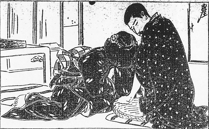 キーワード 大きな束髪;髪飾り;素足;飛白の羽織