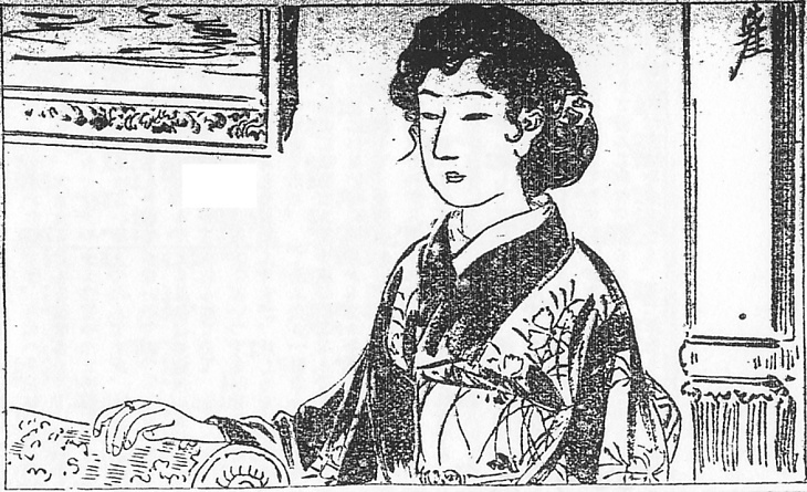 | 説明 | 「三十前後の奥様風の女」という紹介が冒頭にある。この上なく簡単だが、それでもこの時代まだ、家庭夫人のだれもが奥様という身分とは考えられていなかったことを思えば、この女性の社会的ランクづけが狭まる。第7回には詳しい説明がある。「わざわざ縮らした髪を七分三分に分けて、前をぐっと押し潰して背後を出した当世流行の束髪に結って、黒っぽい紗の薄物の下に純白の長襦袢を透かして見せながら(……)」と。第1回は自家用車を駆っての外出なので羽織にショールを羽織っている。亡夫の大きな遺産を相続した未亡人で、その派手な生活からとかく噂のある女性。束髪の七三分けは若い人ならもうだれもがしているが、鏝(コテ)で髪を縮らすのはまだ東京でも数軒の美容院がやっている程度、大胆なスタイルだった。(大丸 弘) |