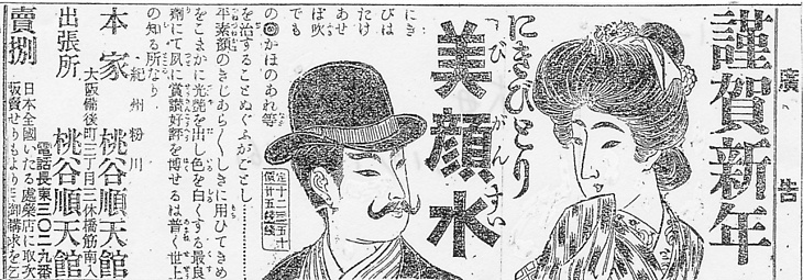 | キーワード | ニキビとり;美顔水;化粧水;袖で口元を押さえる;ホンブルグ帽;八字髭 |