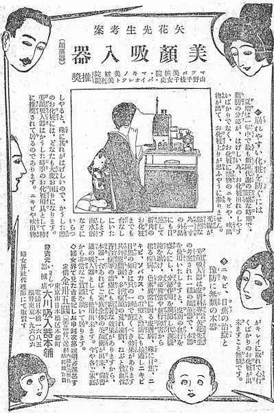 | タイトル | 矢花先生考案 美顔吸入器:マツバ美粧院・マキノ美粧院・山野千枝子女史・バイオレツト美粧院推奨 |