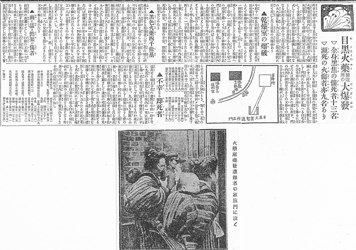 | タイトル | 目黒火薬製造所の大爆発:火薬庫爆発遭難者の家族門に泣く |