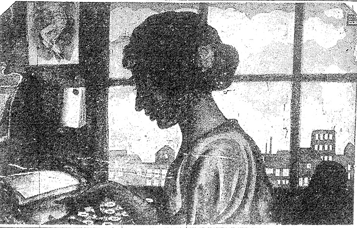 キーワード 影;横顔;側面;タイプライター;窓ガラス