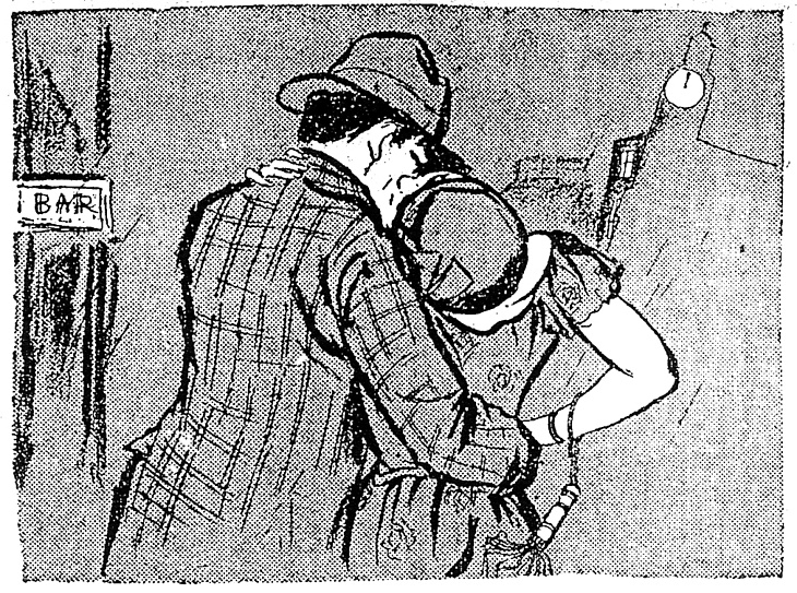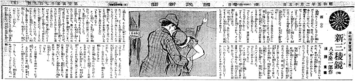 説明 大震災からの復興がほぼ一段落した1927(昭和2)年,1928(昭和3)年から満州事変(1931年)までの期間は、一方でエロ・グロ・ナンセンスの時代といわれたような、束の間の開放的な時代だった。横町とはいえ、街中で歩きながらの接吻をしている若い二人は、必ずしも恋人というほどの仲ではない。欧米人風の接吻の習慣はおそらく、外国映画の影響のもっとも正直な結果として、この時代の若い人たち、少なくともやわらかい頭を持った若者の間では、当たり前のこととなっていたらしい。(大丸 弘)