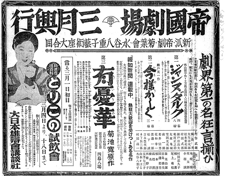 | 小説のタイトル | 帝国劇場三月興行 有憂華(うゆうげ)(菊池寛原作) |