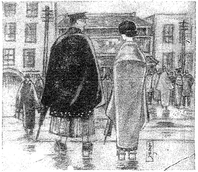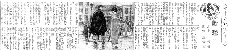 キーワード 学生帽;[インバネス;トンビ;鳶(とんび);二重回し;二重廻し;二重外套;二重マント];ショール;洋傘;蝙蝠傘;こうもり傘;後ろ姿;背面;電信柱