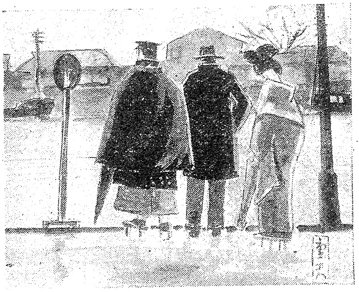 | キーワード | 和装と洋装の対比;学生帽;[インバネス;トンビ;鳶(とんび);二重回し;二重廻し;二重外套;二重マント];ショール;洋傘;蝙蝠傘;こうもり傘;後ろ姿;背面;バス停;電信柱 |