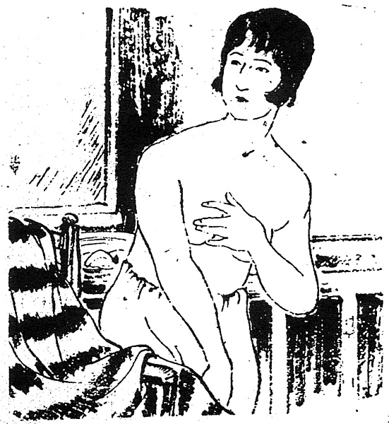 | 説明 | 若いタイピストのアパート暮らし。この時代はそのことだけで新鮮さがあった。この時代の一人暮らしのアパートは六畳というのは良い方で、四畳半がふつう、三畳というのも多かった。このヒロインの住んでいる部屋は水道も引いてあるので上等な部類、流しの前の板敷きも入れて六畳はあるのだろう。水道が引いてあれば身体を拭くことはできる。しかし、それを鍵穴から覗かれた、というところにも部屋の狭さが察せられる。彼女は猿股を穿いている。女性の下穿きはふつうは「ズロース」と呼んだ。挿絵でも細いゴム入りの、だぶついたトランクスで、drawers(ドロワーズ)系統の形のものであることがわかる。次の年に、有名な白木屋の火事があった。女性が下穿きを穿くようになったのはそれ以後だ、などというのはもちろん俗説で、昭和の初め頃でもデパートなどで下穿きはよく売れていた。(大丸 弘) |