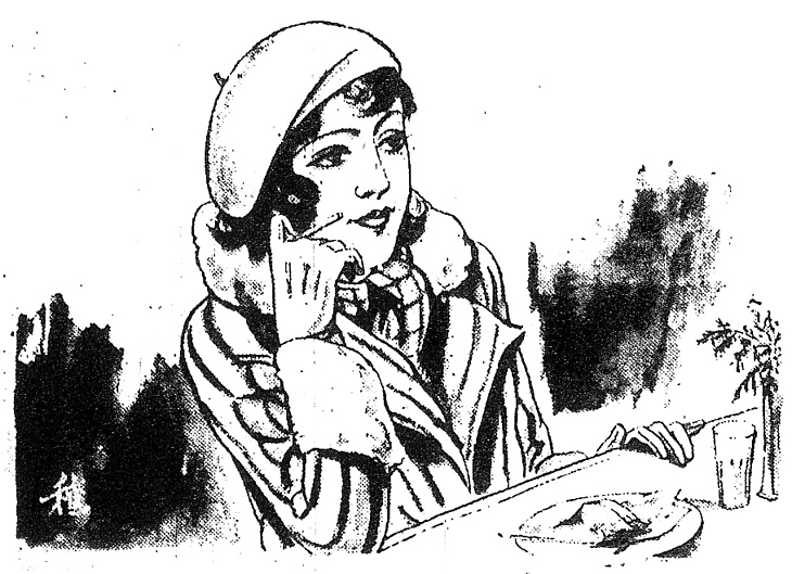 キーワード ベレー帽;毛皮つきコート;手袋;マフラー;煙草;肘をつく