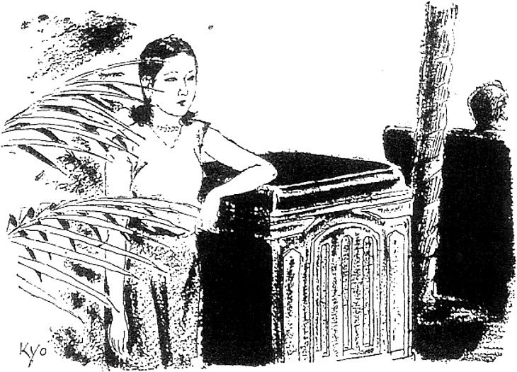 | 説明 | 広津和郎には『女給』という新聞小説があるが、銀座の不良青年たちを主人公とするこの作品も、主な舞台は女給たちの世界だ。この日の場面も銀座二丁目のビルの地下にある、ややインテリ好みといった喫茶店。電気蓄音機の蓋に肘をのせている女給は、髪は無造作なお下げ風にして、ノースリーブのブラウス、首に小さなチョーカーのネックレスをしている。大正時代の女給とちがい、もう和服の上に白いエプロンを掛けている時代ではない。昭和に入ってからの洋装の女性が、和服の女性と大きくちがって見えたのは、その時代の世界的なファッションが、女性の姿態を思いきって露呈する方向だったためだ。初夏、むき出しにされた若い女性の二の腕は、和装の長袖を見慣れた男性の目には、五月の風のように爽やかにも、またエロティックにも映っただろう。(大丸 弘) |