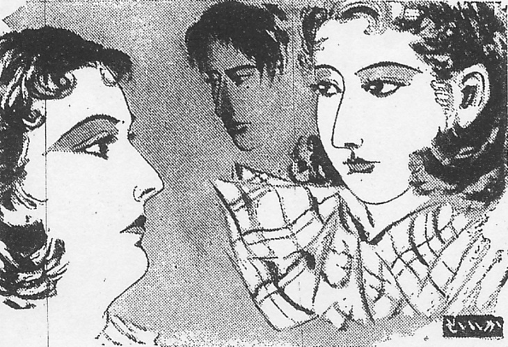 | 説明 | 第26回には二人の女性、第27回にはそのうちの一人、三つの顔は髪型も含めてほとんど区別がつかない。二人とも東京育ちの良家の女性で、いまは二、三流の舞台女優。三つの顔に共通するのは濃いアイシャドウ。目を大きく、またパッチリ見せるために入れるアイラインとちがい、シャドウは目に表情をつけるもので、美容師は原則として施さないし、するとすればTPOを聞いて慎重にする。眼窩の深い西洋人はもともと上からの光線によって、目の周辺に影ができる。日本人にも鼻の高い人はいるが、目の深い人は少ない。むかしはそういう人のことを、石垣の蛍、などと悪口を言ったが。役者が赤毛ものの舞台で西洋人に扮するには、とくに瞼を濃く塗らなければならない。だから外国映画を見て、あんな顔になりたいと思った女の子は、この方法を試みる。アイシャドウは夜のお化粧ですヨ、と美容師などが若い人に注意したものだが、必ずしも夜、というのではなく、夜を連想させるような、意味ありげな目つきになる、ということだろう。(大丸 弘) |