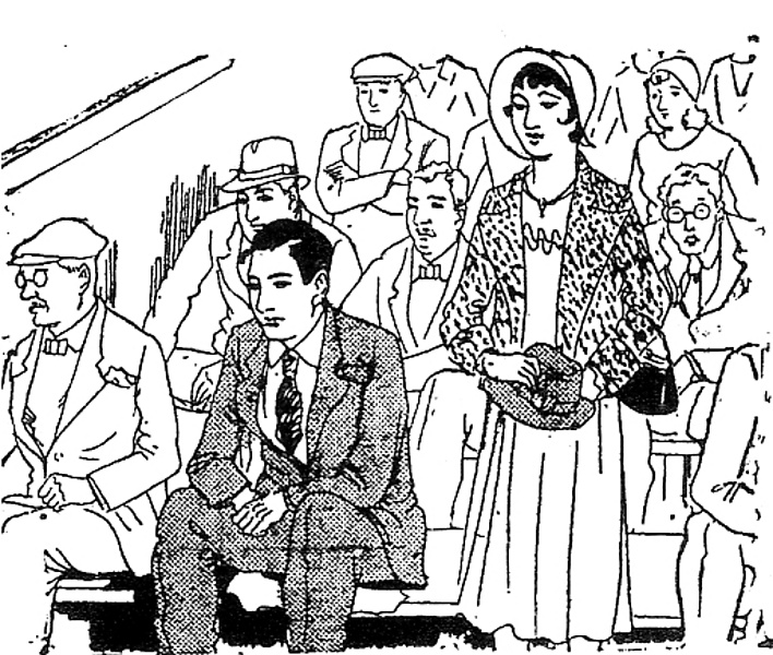 | 身装画像コード | D6se:[洋装;西洋化;西洋観;ハイカラ;西洋かぶれ;開化ぶり;西洋憧憬] Wbo:[かぶり物一般;帽子] Psu:[スーツと附属品] Wne:[ネクタイ;ネックバンド] Wka:[鞄] |