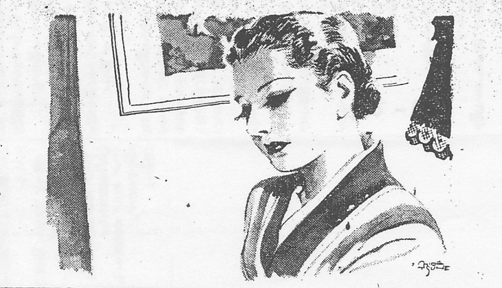 説明 第7回は、抱え主の家を飛び出してきた芸者。第9回は、前代議士家の小間使い。第26回はその前代議士夫人。この時期の代表的美人画家小林秀恒による、美人の表現でいちばん気づくことは、睫毛(マツゲ)の強調、あるいは誇張だろう。目を大きく、あるいはパッチリ見せるためには、瞼に濃い線を入れてもうひとつの輪郭をつくるのがいちばん簡単な方法だが、さらにもうひとつ欲が出て、ただ大きいだけでなく、もう少し情のある目、物言いたげな目にしたい、というような注文に添うのが、目の周りに陰をつくる工夫だ。アイシャドウも長い睫毛も効果はちがうがこの注文に添っている。そのため、この芸者や小間使いのようにやや伏し目になっていると、黒く塗り潰したように見える。西洋人は一般に日本人より長い睫毛を持っているので、長い睫毛はまた、ある程度は西洋人くさい顔に見せる役にも立つ。(大丸 弘)