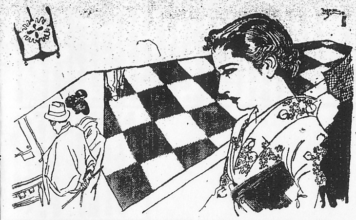説明 第7回は、抱え主の家を飛び出してきた芸者。第9回は、前代議士家の小間使い。第26回はその前代議士夫人。この時期の代表的美人画家小林秀恒による、美人の表現でいちばん気づくことは、睫毛(マツゲ)の強調、あるいは誇張だろう。目を大きく、あるいはパッチリ見せるためには、瞼に濃い線を入れてもうひとつの輪郭をつくるのがいちばん簡単な方法だが、さらにもうひとつ欲が出て、ただ大きいだけでなく、もう少し情のある目、物言いたげな目にしたい、というような注文に添うのが、目の周りに陰をつくる工夫だ。アイシャドウも長い睫毛も効果はちがうがこの注文に添っている。そのため、この芸者や小間使いのようにやや伏し目になっていると、黒く塗り潰したように見える。西洋人は一般に日本人より長い睫毛を持っているので、長い睫毛はまた、ある程度は西洋人くさい顔に見せる役にも立つ。(大丸 弘)