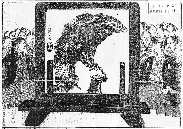 | キーワード | 黒紋付き羽織;衝立;鷹 |