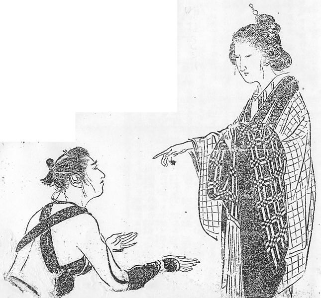 説明 〈遡及資料〉雪駄直しの十六歳の少年がはじめて賭場に足を踏み入れたが、盗んできた元手の二十五両をたちまち巻き上げられ、着ているきものまで脱いだところを、親分の姐御にたしなめられる。まだ前髪のある寅吉は紺の腹掛と手甲だけ。手甲は左右が紐でつながってそれを首に掛けるようにできている。姐御の髪はいわゆる達磨返し風。この種の髪にあまり決まった形を求めるのはまちがいだろう。『守貞謾稿』(1837年~)の達磨返しではこれほど髱(タボ=後ろ髪)が突き出ていないが、それはもちろん髪の多いか少ないか次第。眉を落としているのは、この時代では当然。[新聞雑誌]にはじめて、既婚女性の眉剃りお歯黒を禁ぜよとの意見が現れたのは次の年(→年表〈現況〉1871年7月 「既婚女性のお歯黒・眉剃り」新聞雑誌 1871年7月)。また、眉剃り・お歯黒を批判した福沢諭吉の『かたわ娘』は三年後。(大丸 弘)