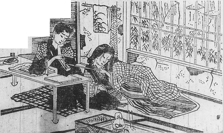 | キーワード | 火鉢;机;肘(ひじ)を突く;じれった結び;黒襟;助教;若者 |