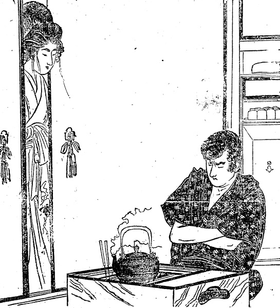 | キーワード | しかめ面;飛白のきもの;腕まくり;腕を組む;花魁(おいらん);娼妓;遊女;女郎;兵庫髷;赭熊髷(しゃぐままげ);赤熊髷;長火鉢;火箸;銅壺(どうこ);薬缶(やかん);襖引き手;襖引手 |